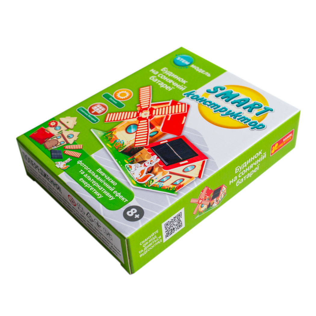 Smart-конструктор «Будинок на сонячній батареї» – інноваційний набір для дітей від 8 років, який дозволяє наочно побачити, як сонячна енергія перетворюється на електрику. Збираючи будиночок із рухомим вітряком, дитина власноруч створює новий об’єкт та знайомиться з основами альтернативної енергетики.