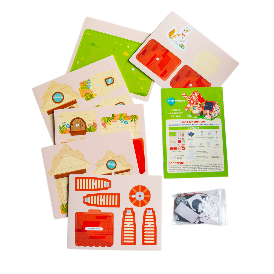 Цікаві факти про сонячну енергію, фотогальваніку та відновлювані джерела надихають дітей відкривати нове. Поставивши будиночок під сонячні промені, вітряк оживає – практичне знайомство з наукою та енергією у дії. Безпечна, екологічна й пізнавальна гра стане корисним подарунком, який приємно дивує та захоплює!