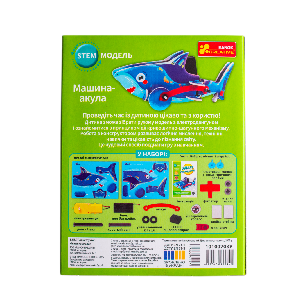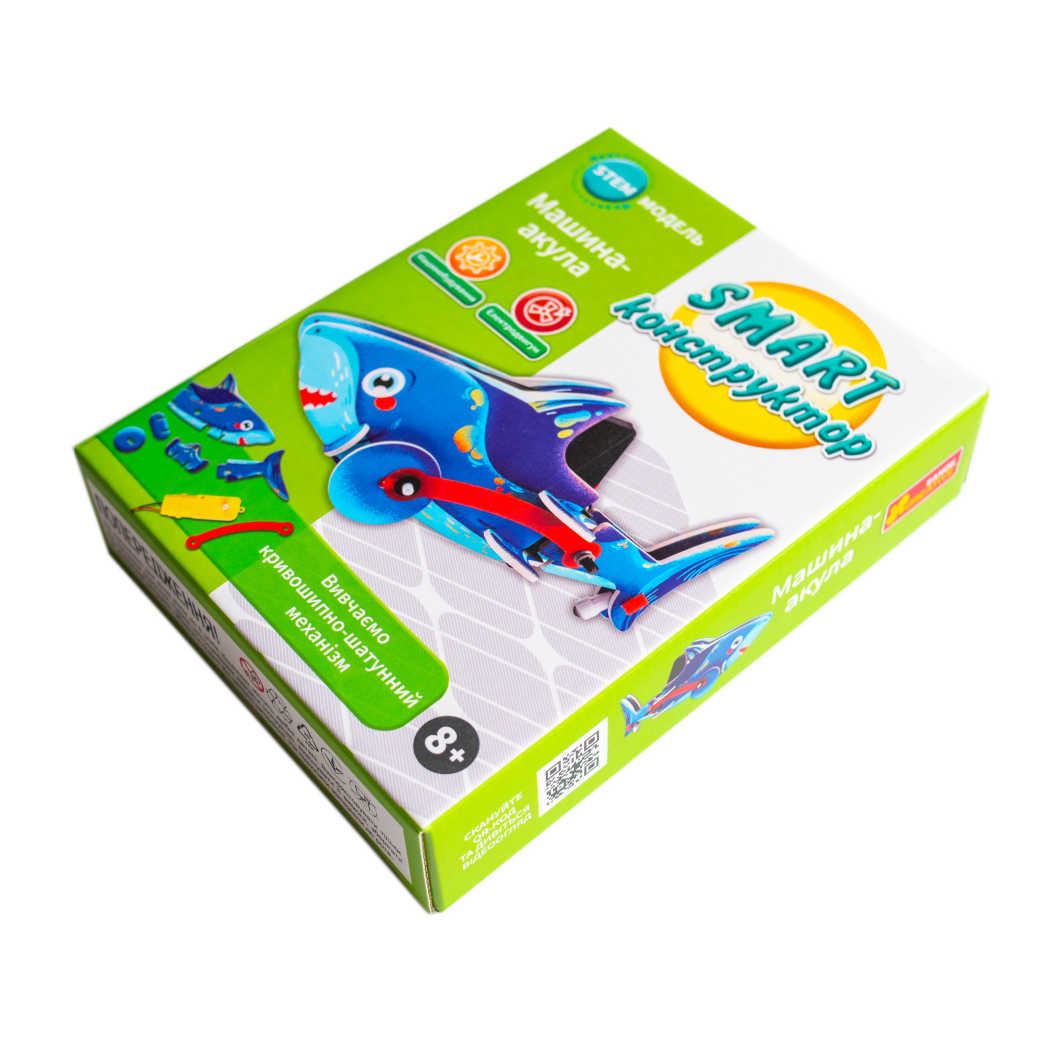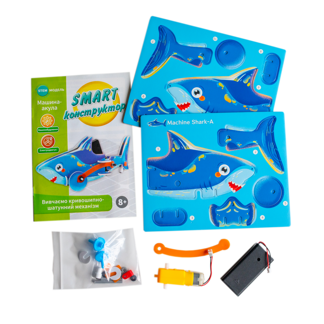Акула оживає в твоїх руках! Цей SMART-конструктор демонструє роботу кривошипно-шатунного механізму — кожен оберт деталей захоплює та дивує. Міцні яскраві деталі та покрокова інструкція роблять складання легким і цікавим. Коли акула рухається, відчувається справжнє механічне диво. Ідеально для домашніх експериментів, показів друзям або перших знайомств зі світом техніки!