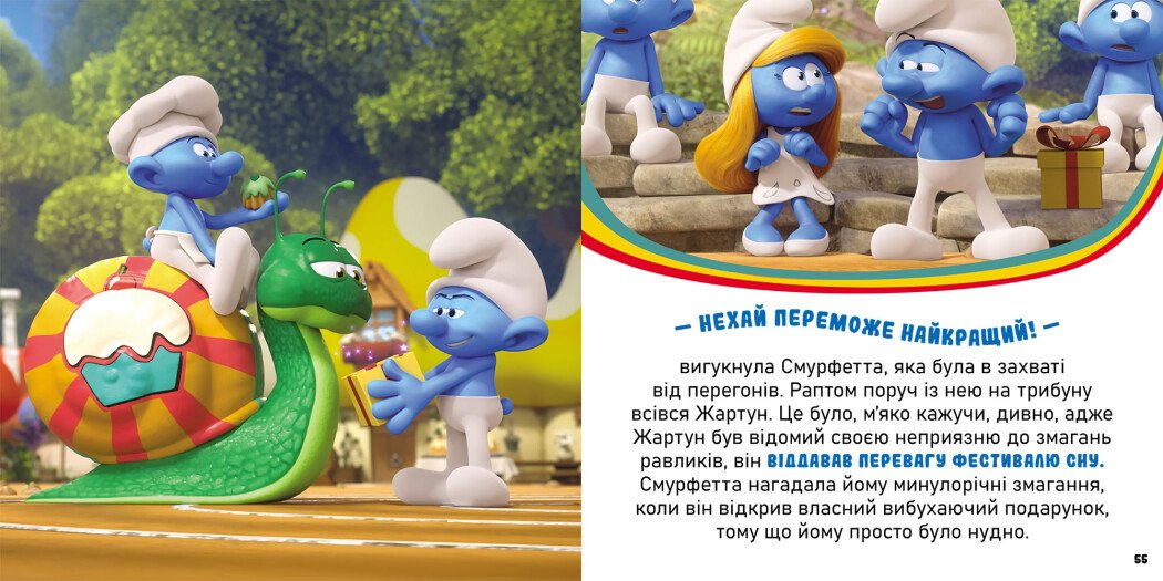 Що сталося через Книгу Магії? Куди подівся Малюк, за яким мали доглядати Незграбко та Бевзик? Як смурфики брали участь у надзвичайних перегонах? Ця книжка містить три неймовірні історії за мотивами популярного мультсеріалу про чарівних синіх створінь. Відчуй себе учасником веселих пригод кумедних кмітливих смурфиків!