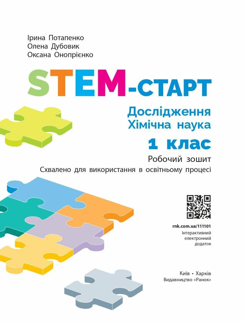 Зошит є складовою навчально-методичного комплекту «STEM-старт». Посібник розроблено з метою формування базових дослідницьких навичок та ознайомлення з основами хімічної науки, у т. ч. науковими інструментами, методами спостереження та основами наукового й інженерного методів.