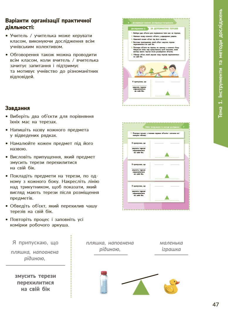 Методичні поради щодо організації дослідів, роботи з учнівськими зошитами та використання наукових інструментів.