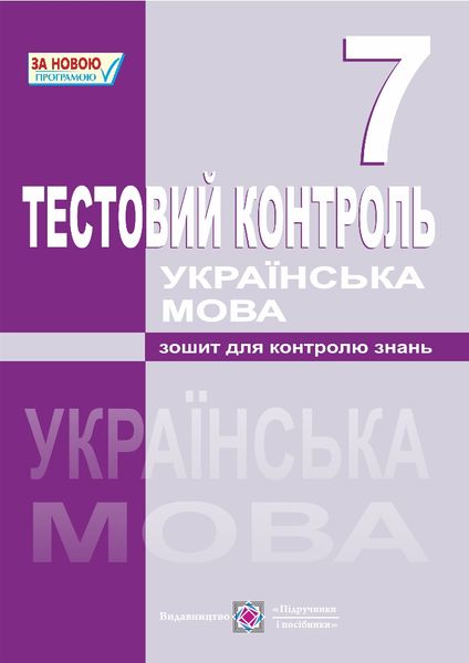 Посібник призначений для тематичного та поточного контролю навчальних досягнень з української мови у 7 класі. Завдання складено відповідно до вимог чинної програми з української мови та методичних рекомендацій щодо використання тестових технологій у процесі вивчення української мови в загальноосвітніх навчальних закладах.