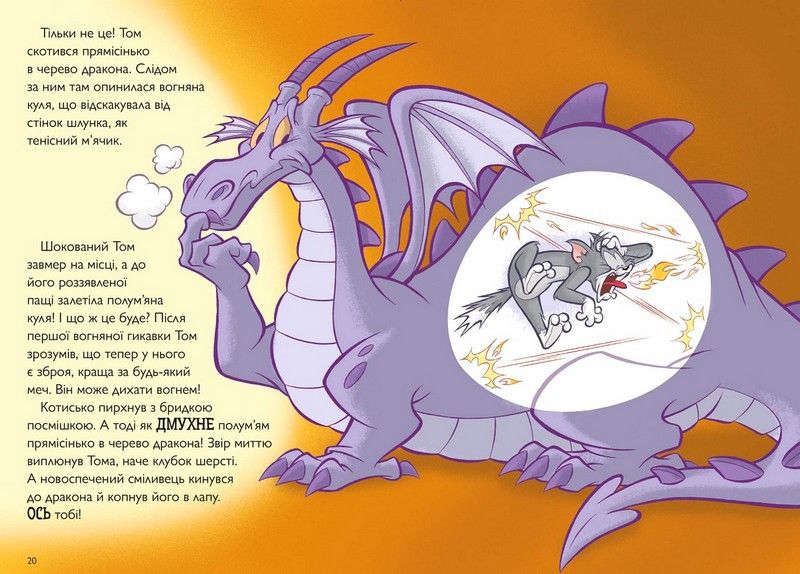 Книжка за мотивами мультсеріалу про Тома й Джеррі.Лицар Том має довести свою відважність і відданість королю. Для цього треба розправитись із драконом. Але ж цей котисько навіть мишеня не ладен упіймати! Сутичка з драконом дарує Томові можливість дихати вогнем і нарешті зробити те, про що він давно мріяв.Веселощі розпочинаються! Чому варто придбати: Захоплива історія з героями, що ніколи не вийдуть із моди. Цікаві завдання роблять процес читання справді веселим. Пошук спільного, лабіринти, заховані елементи, зашифровані слова та інші активності. Запрошуй друга чи подругу до гри, яку знайдеш на останній сторінці книжки. У цій книжці є дракони!