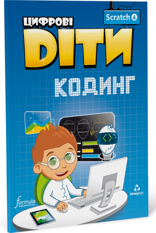 Посібник знайомить учнів з мовою програмування Scratch. Учні крок за кроком вивчають алгоритми, цикли, вчаться малювати, а в кінці створюють власну комп’ютерну гру.