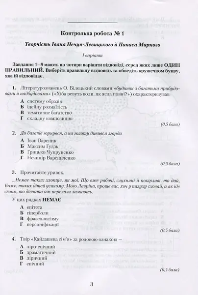 Гриф Міністерства освіти і науки України Зошит укладений за новою програмою з української літератури для 10 класу. У посібнику подано різнорівневі запитання та завдання в тестовій формі (закритого й відкритого типів з компетентнісного підходу) до програмових тем, що вивчають у 10 класі. Для учнів, учителів, методистів, батьків.