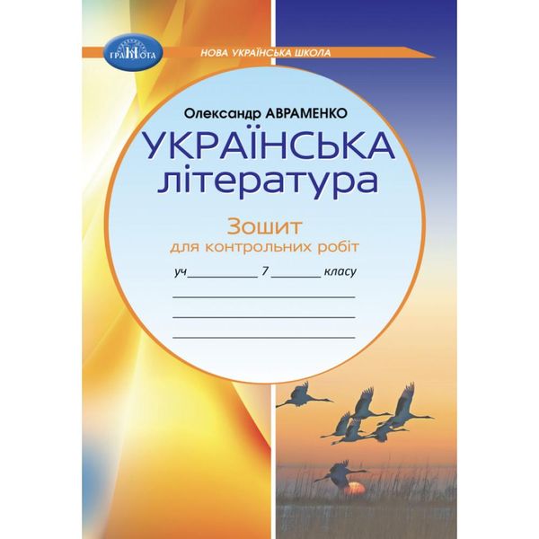 Українська література, 7 кл. НУШ, Зошит для контрольних робіт – Авраменко О. М. – ГРАМОТА (124825)