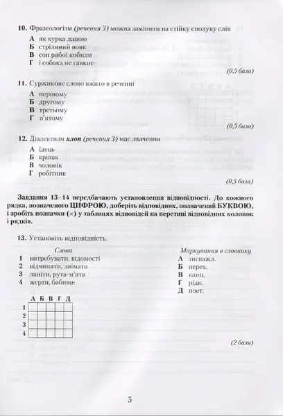Зошит укладений за новою програмою з української мови для 10 класу. У посібнику подано різнорівневі запитання та завдання в тестовій формі (закритого й відкритого типів з елементами компетентнісного підходу) до програмових тем, що вивчають у 10 класі. Для учнів, учителів, методистів, батьків.