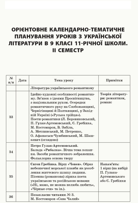 Навчальний посібник містить конспекти всіх уроків української літератури для II семестру 9 класу, які розроблено із урахуванням змін, здійснених Міністерством освіти і науки України 2015, 2016, 2017 рр. Розподіл навчального часу та зміст розроблених уроків носить орієнтовний характер. Згідно з положеннями пояснювальної записки оновленої програми в разі потреби вчитель має право самостійно змінювати обсяг годин у межах розділу, а також змінювати послідовність вивчення розділів.