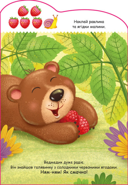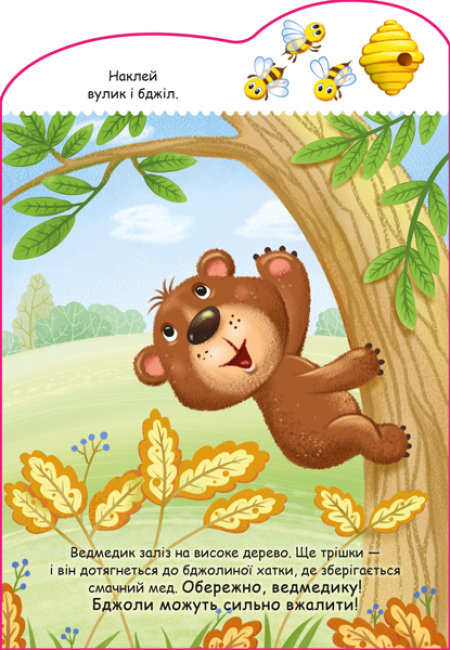 Ваша дитина любить тварин? А наліпки? У книжці вона знайде і те, й інше! Короткі прості сюжети про ведмедика, великі барвисті наліпки, якими малюк доповнить картинки, — з цією книжкою час промайне цікаво й весело! Завдяки багаторазовим наліпкам дитина може щоразу створювати нову картинку і придумувати свою історію.