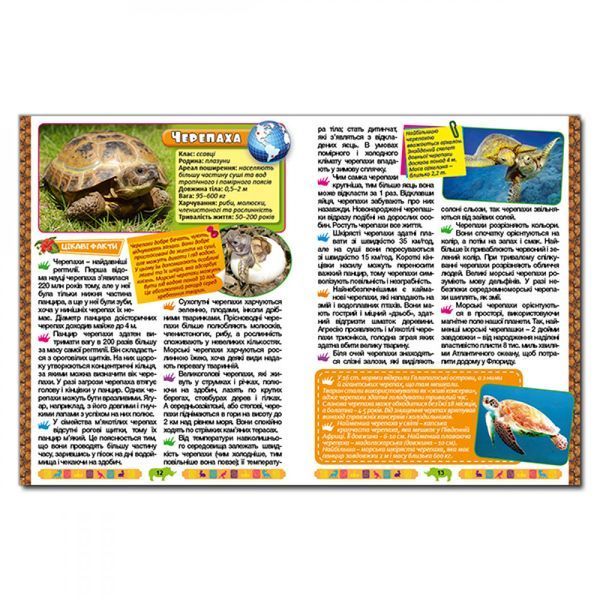 Ця чудова книга познайомить вашу дитину з дивовижним світом тварин: дикими і домашніми, птахами і рептиліями, мешканцями різних континентів, морів і океанів. Пізнавальні тексти, незвичні факти, яскраві фотографії допоможуть юному досліднику дізнатися багато цікавого та корисного про звички тварин, середовище проживання, харчування, особливості виховання дитинчат і багато іншого. На сторінках видання ваша дитина зустрінеться з найбільшими і найменшими, найшвидшими і найнебезпечнішими, найпривітнішими і найнезвичайнішими тваринами нашої планети. Книга стане справжнім подарунком для допитливої дитини.