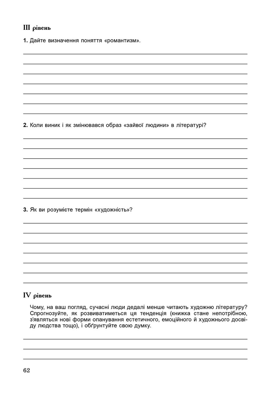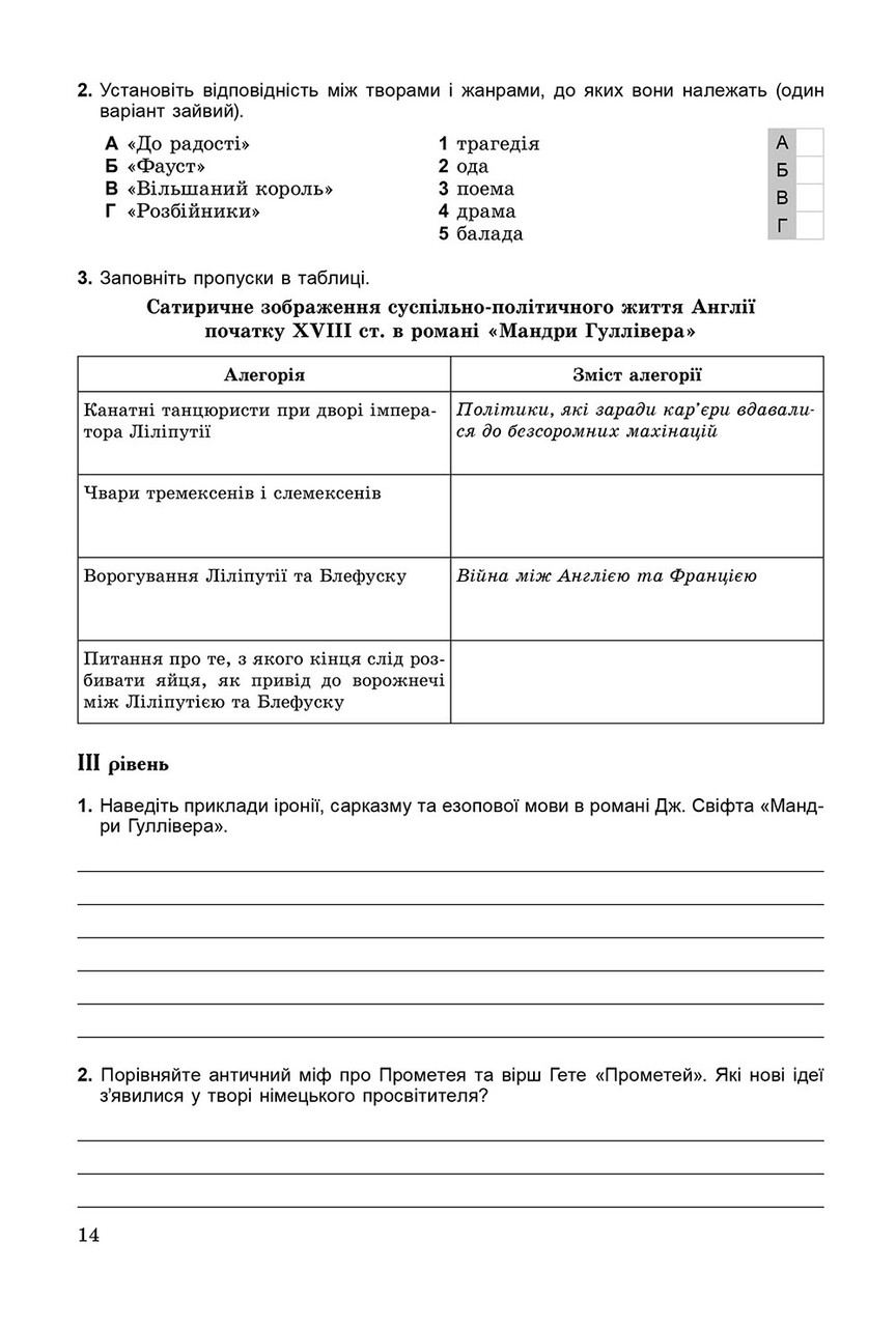 Гриф: Схвалено для використання в загальноосвітніх навчальних закладах Перевірка розуміння теоретичних понять і прочитаних творів. Тестові й творчі завдання. Розвиток писемного мовлення.