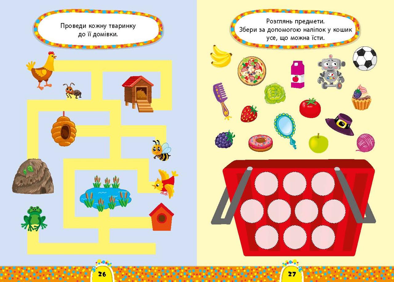 Книжка «Світ навколо. 4+» допоможе перевірити й закріпити знання дитини про навколишній світ. На кожній сторінці подано одне завдання, спрямоване на повторення чи вивчення тварин, комах, овочів і фруктів, смаку та запаху продуктів та предметів, матеріалів, із яких їх виготовлено, розуміння просторових відношень, розрізнення кольорів, емоцій, геометричних фігур і пір року. Тематичні наліпки доповнять й урізноманітнять роботу. Видання призначене для спільної роботи дорослих з дітьми віком від чотирьох років./