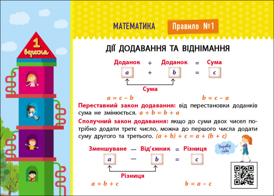 Настільний зошит-календар допоможе пригадати важливий матеріал та впевнено розпочати навчальний рік. Це своєрідний адвент перед школою, який розрахований на 4 тижні та складається із двох частин: ігрових завдань за навчальною програмою та довідничка із правилами, який буде поруч під час виконання домашніх завдань. До кожного правила є коротенькі тести, які відкриваються за QR-кодом й допоможуть дитині перевірити знання. Крім цього, в зошиті є чек-лист, який нагадає що потрібно зробити перед 1 вересня.