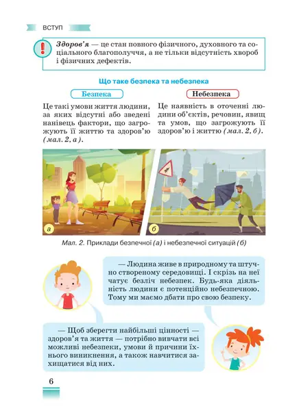 Підручник створений за Модельною навчальною програмою «Здоров’я, безпека та добробут. 5–6 класи (інтегрований курс)» для закладів загальної середньої освіти. У ньому подано поради та рекомендації щодо формування навичок здорового способу життя, профілактики захворювань, принципів безпечної життєдіяльності та правила поведінки в небезпечних ситуаціях.