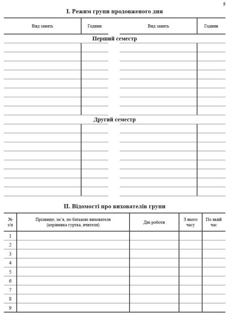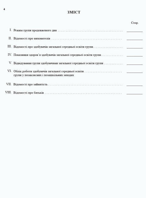 Загальна документація. Журнал обліку роботи групи продовженого дня.