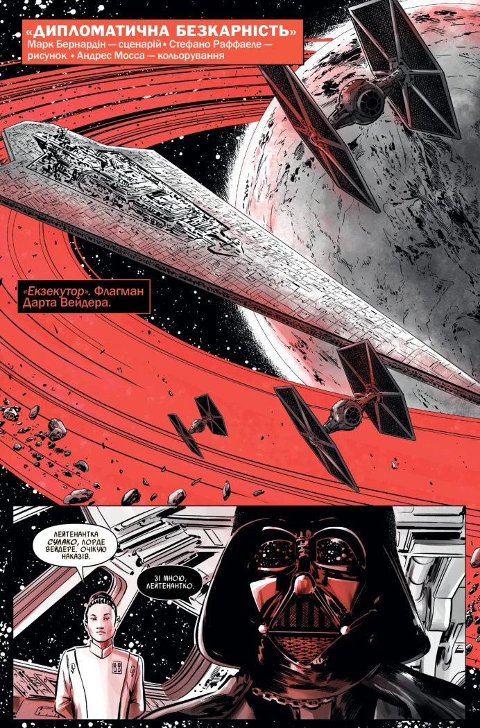 ДЖЕЙСОН ААРОН ПОВЕРТАЄТЬСЯ до світу «Зоряних війн» і разом із художником Леонардом Керком готовий поділитися жахами! Піч Момоко закручує сюжет у власному стилі! Денієл Вор рен Джонсон показує Вейдера таким, яким він не був ще нік оли! Уперше із «Зоряними війнами» працює Девід Пепоуз! Марк Бернардін підготував для Вейдера незабутню місію! Френк Тієрі відправить лорда ситів на планету Готт!
