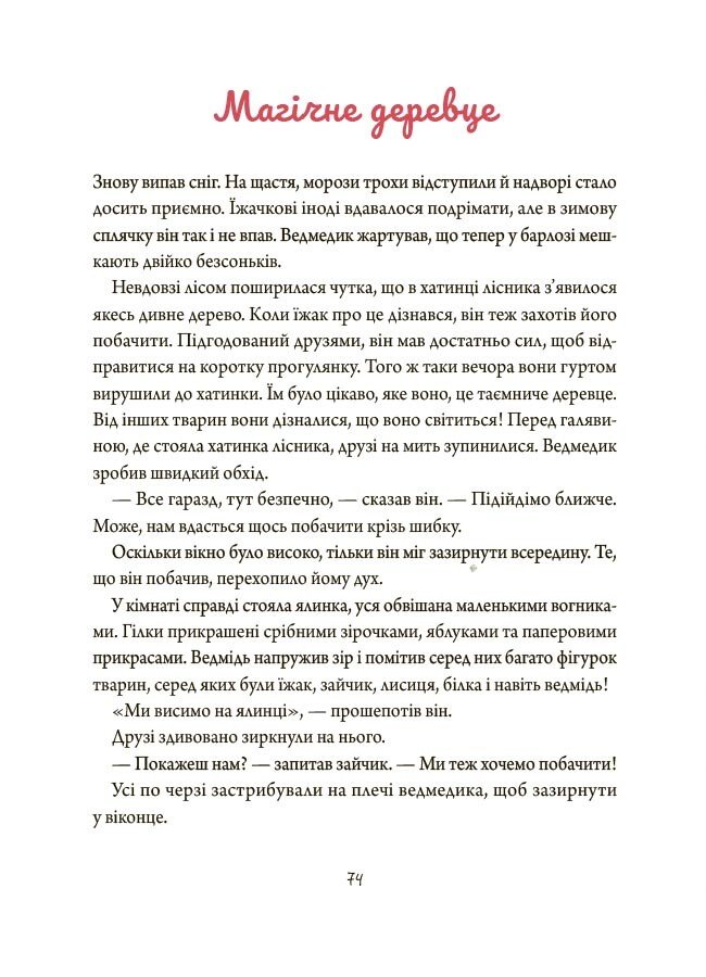 Спільними зусиллями лісові мешканці знаходять найкрасивішу ялинку, прикрашають ліс, щоб оточити себе чарівною святковою атмосферою. Книжка сповнена гумору, доброти та важливих уроків для маленьких читачів про взаємодопомогу, взаємопідтримку та справжню дружбу.